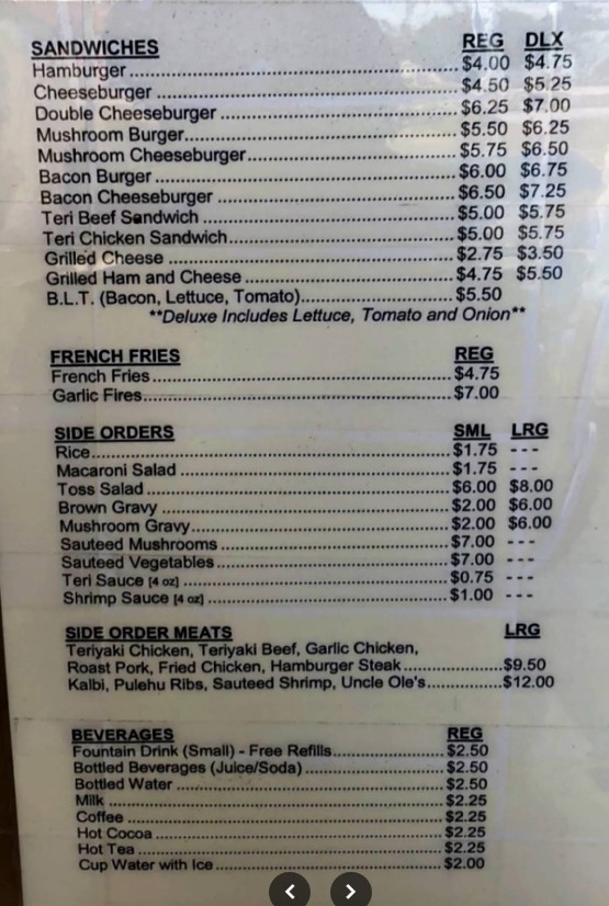 Great local place! You know it's gonna be good when it's mostly locals there that the owners know. Our favorite dish from there were the peanut butter buns. This cannot be missed! If you like peanut butter - please don't leave workout trying it from here. Gooey delicious and divine. The garlic shrimp were yummy. Loco moco was above average. Kalbi beef was great.